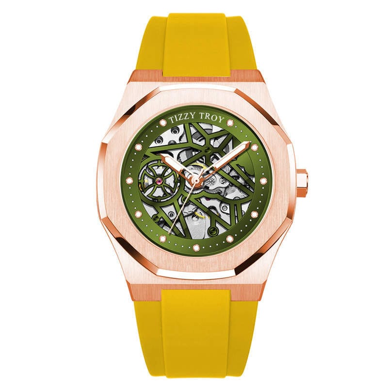 The Tizzy Troy luxury automatic movement watch (Prestige) is defined by its operation through gears and mechanical components, arriving in a unique and refined manner while fostering a connection with the owner through its motion, which converts into energy!
